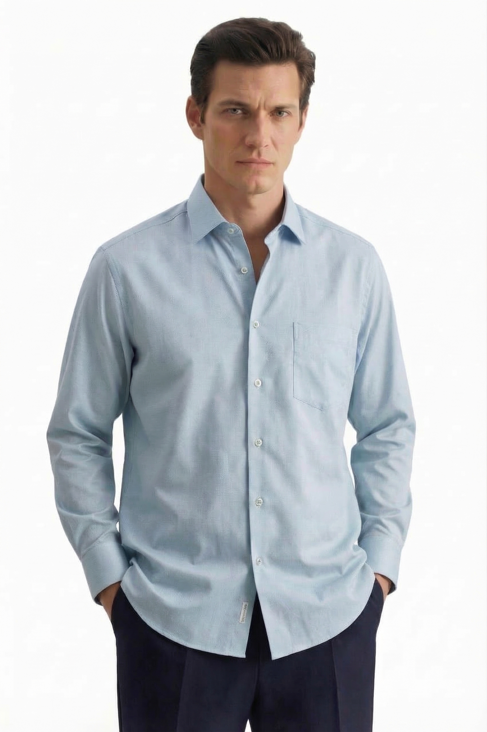 • Прямой силуэт, Классический воротник, Классический (на пуговице), Однотонный, Голубой