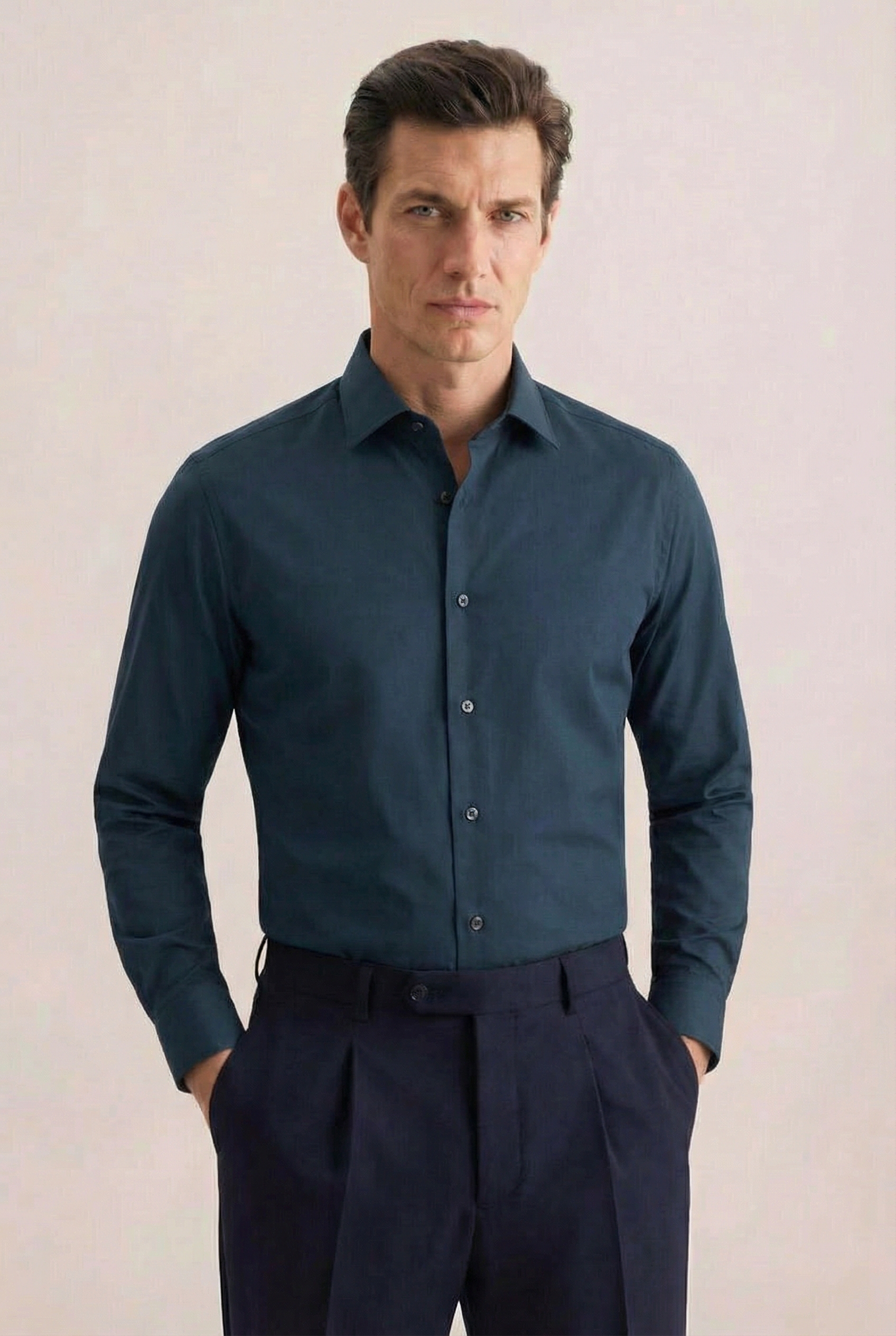 • Shaped Fit, Классический воротник, Темно-Бирюзовый