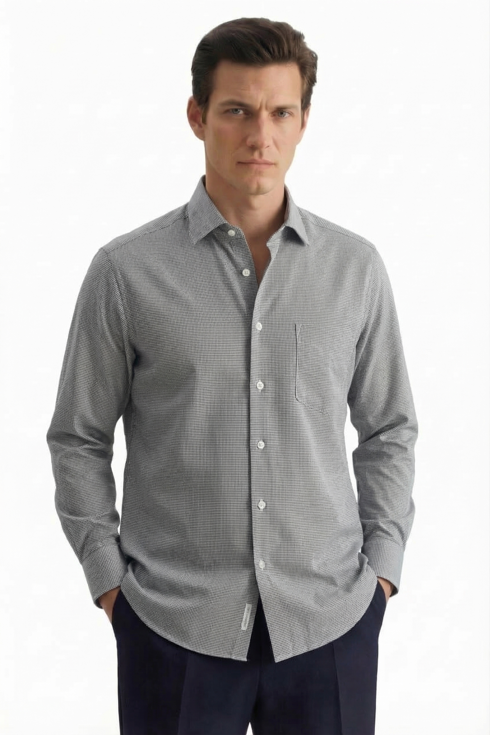 • Полуприлегающий силуэт, Классический воротник, Классический (на пуговице), Клетка, Цветной
