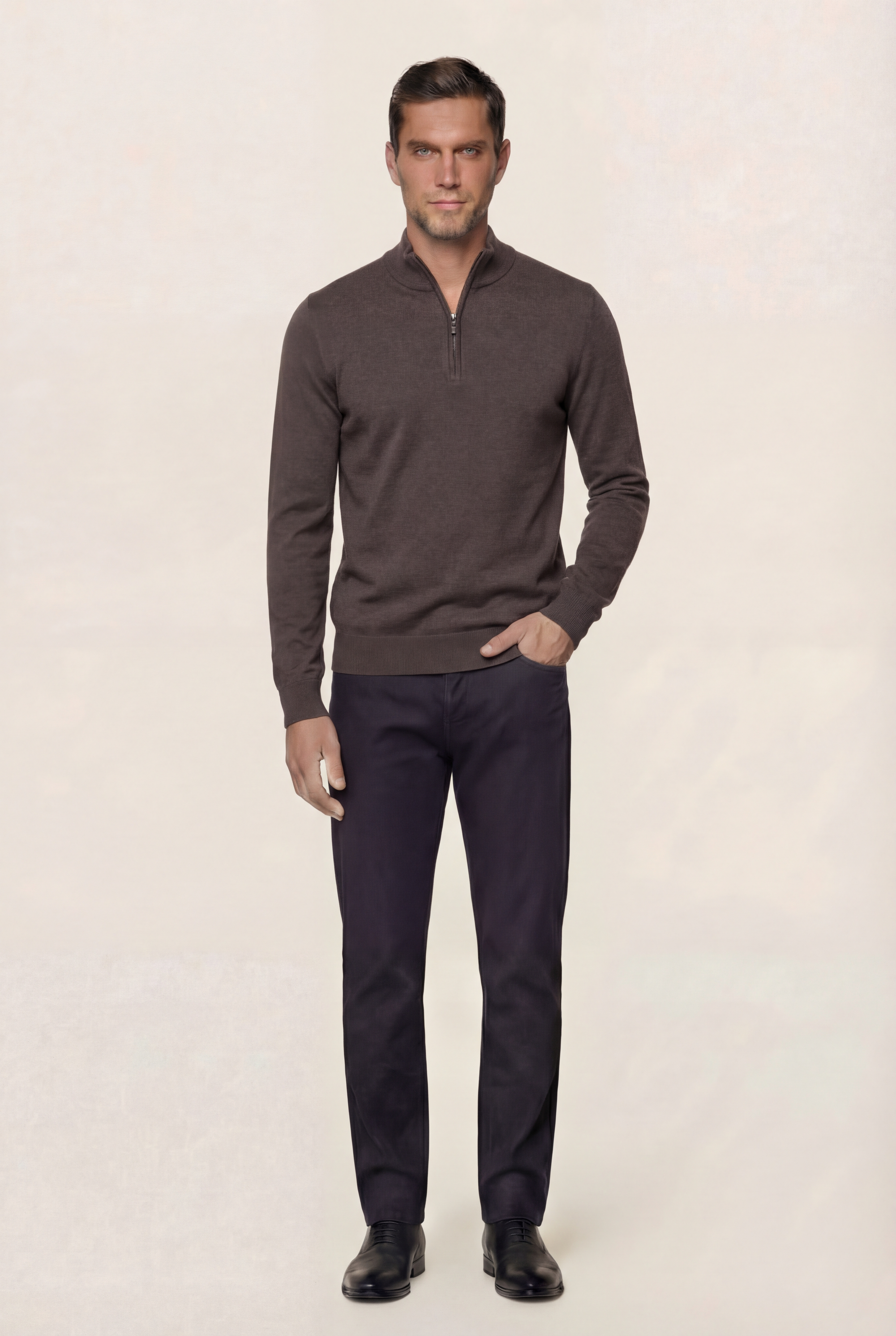 • Мужской джемпер на молнии с воротником-стойкой станет отличным дополнением к вашему гардеробу. Джемпер изготовлен из высококачественного хлопка обеспечивающий мягкость и комфорт при носке. Воротник-стойка придает модели современный и строгий вид, а молния добавляет удобства в использовании, позволяя регулировать уровень комфорта в зависимости от погодных условий. Манжеты и пояс джемпера на трикотажном манжете. Стильный, удобный и практичный джемпер станет отличным дополнением к гардеробу любого мужчины.